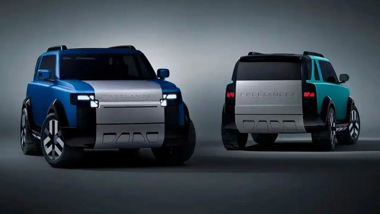 O primeiro passo dessa nova fase vem com o Concept 97. O nome faz referência direta ao ano de estreia do Freelander original, lá em 1997. Mesmo sem usar o logo da Land Rover, o visual entrega claramente a origem. O novo SUV mistura referências do Freelander antigo com elementos modernos do Land Rover Defender.
