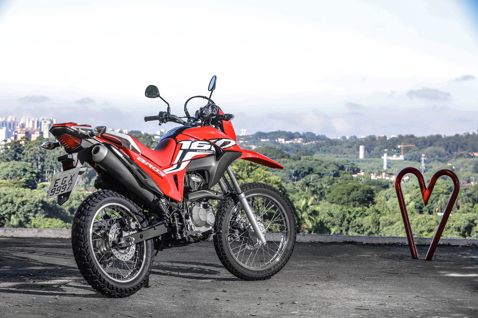 Segundo a marca, a nova NXR 160 Bros Special Edition traz como maior atrativo a pintura vermelha combinada a faixas brancas e novos grafismos – que remetem aos modelos off-road mais “parrudos” da marca, como a CRF 450 RW (modelo que foi campeã Mundial de Motocross em 2019).
