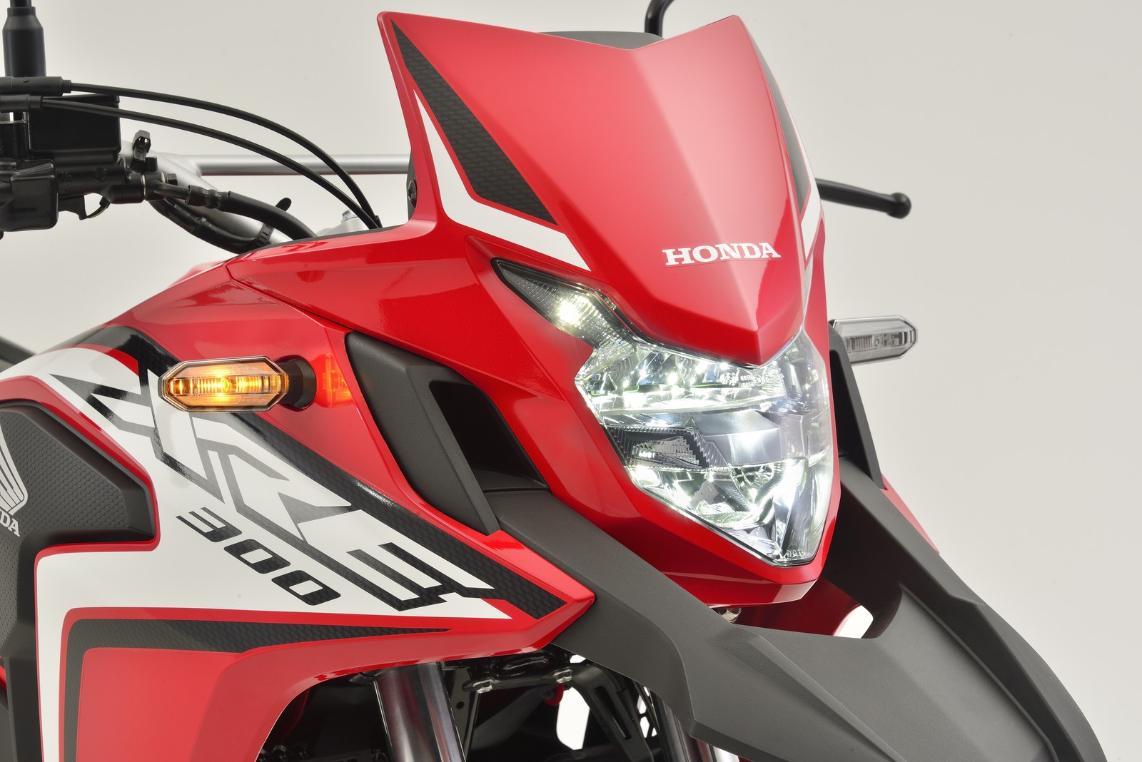 A maior alteração visual da nova XRE 300 é na carenagem frontal, que ficou mais parecida ao da XRE 190. O farol do modelo tem iluminação de led e também ganhou novo desenho, com mais recortes e integrado à peça plástica, com o para-lama superior ganhando novo formato. Na traseira, as novidades ficam para a lanterna também de led e as alças de garupa mais altas e largas. Já o painel de instrumentos ganhou um recurso extra: o de consumo médio e instantâneo.