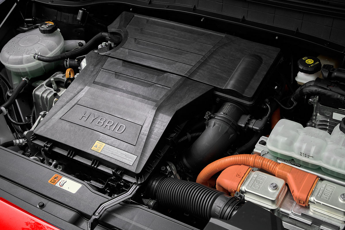Debaixo do capô, o Hyundai Kona usa o motor 1.6 a gasolina de 106 cv que trabalha em conjunto com um motor elétrico de 43 cv. Juntos, os dois motores entregam 148 cv e 26,5 kgfm de torque. Aliado a este sistema, o Crossover compacto utiliza o câmbio automático de dupla embreagem de 6 velocidades.