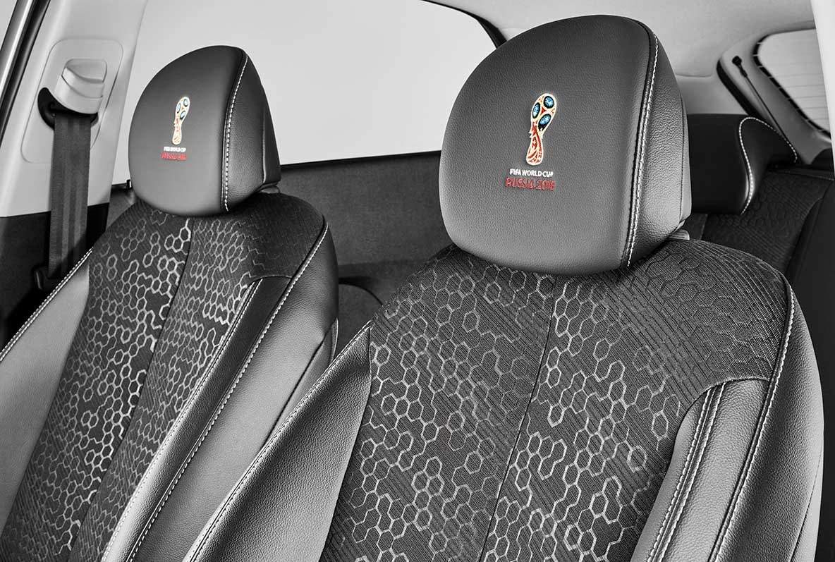 Além disso, o HB20 Copa do Mundo Fifa 2018 conta com novidades visuais que incluem grade frontal, retrovisores e rodas de 15 polegadas pintadas de cinza. Por falar nas rodas, elas já foram usadas outras vezes no modelo. Há ainda lanternas da versão Premium, tapetes alusivos à versão, além do emblema oficial da Copa do Mundo da Rússia nas laterais do carro e bordado no encosto dos bancos dianteiros, que vêm com revestimento em couro e tecido.