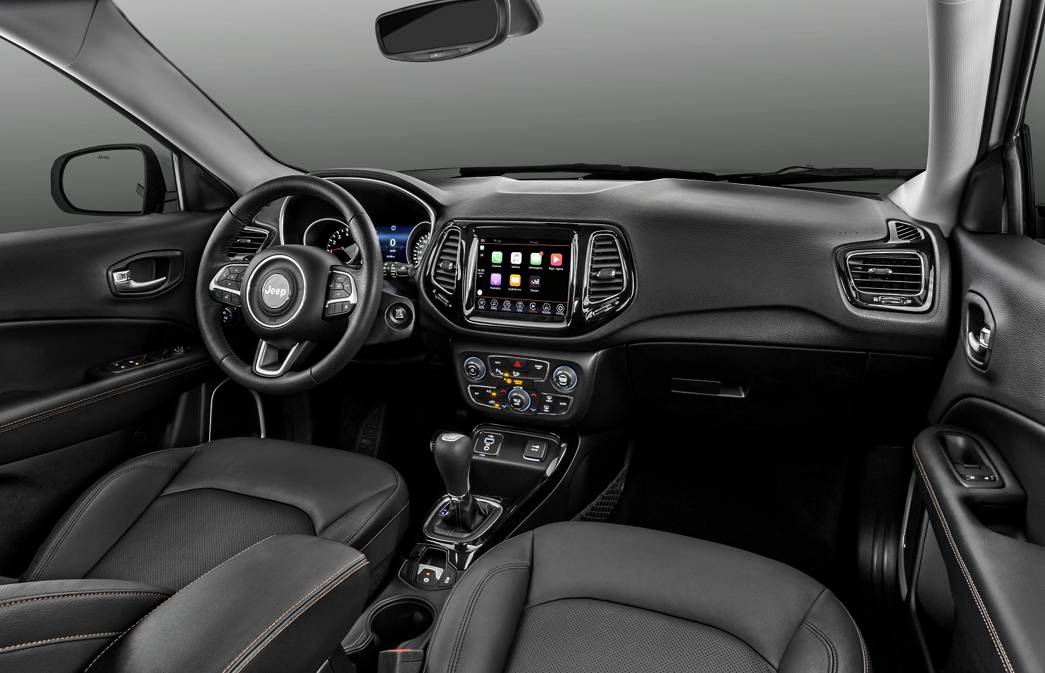 Controle de estabilidade, bancos de couro, ar-condicionado automático de duas zonas e central multimídia Uconnect com tela de 8,4 polegadas com suporte a Android Auto e Apple Car Play continuam no SUV.