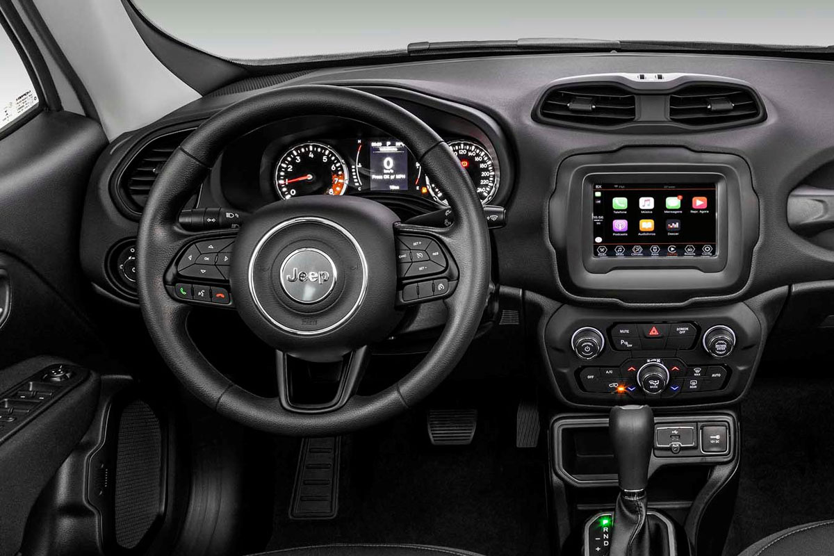O interior conta com a central multimídia Uconnect de 7 polegadas e traz de série itens como ar-condicionado de duas zonas e controles de tração e estabilidade.