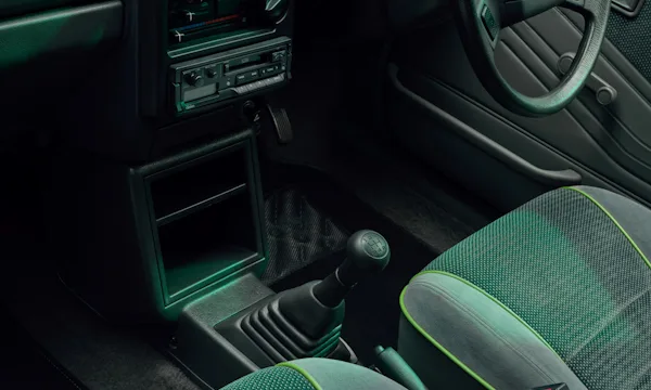 Fora a eletrificação, apenas mais um detalhe mudou. Originalmente, esse Kia Pride era pintado na cor Azul Kingfisher, que foi trocado pelo Brando Pearl que atualmente está presente na gama de carros elétricos da marca. Além disso, o interior recebeu detalhes em verde limão, ainda que mantenha o tecido original da época.