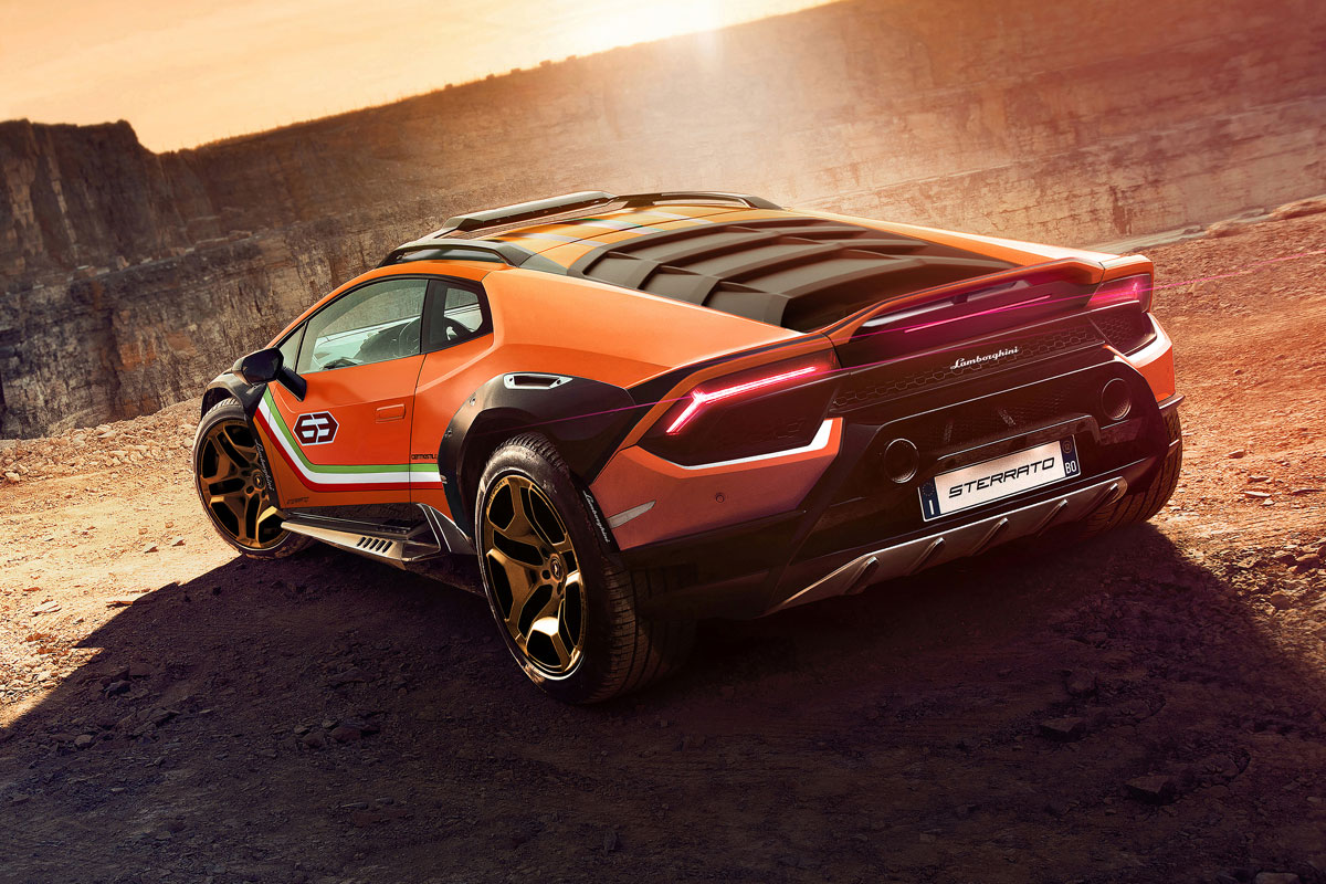 A Lamborghini decidiu levar o lado aventureiro do grandalhão Urus para o superesportivo Huracan, que acaba de receber um conceito chamado Sterrato – sujeira em italiano. Segundo a Lamborghini, o superesportivo teve a altura em relação ao solo aumentada em cerca de 47 mm e o ângulo de ataque foi melhorado em 1% e o de saída em 6,5%.