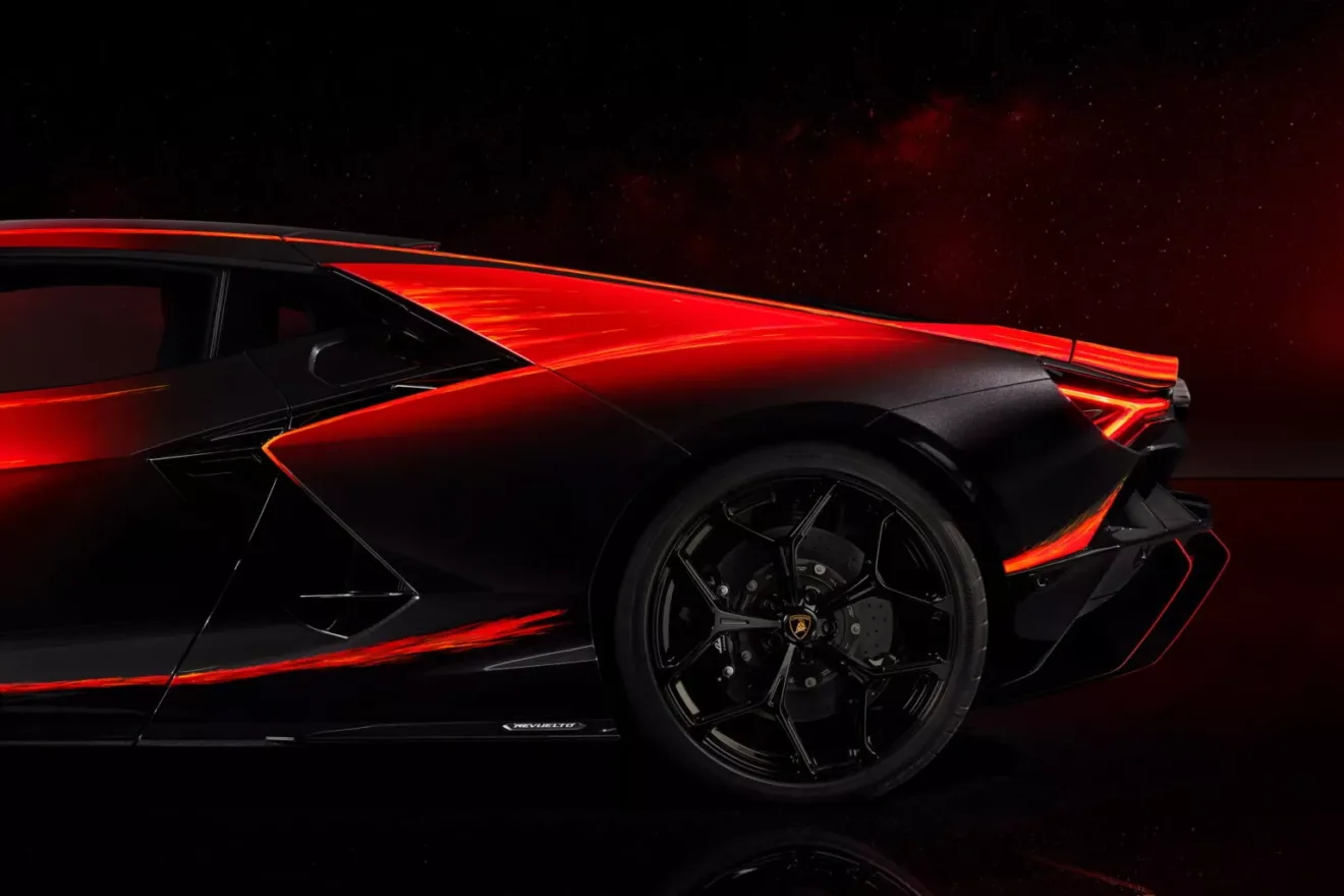 A transmissão é de dupla embreagem com oito marchas e a tração integral. Somado todo o conjunto mecânico, o Lamborghini Revuelto acelera da imobilidade aos 100 km/h em 2,5 segundos (0 a 200 km/h em sete segundos) e atinge a velocidade máxima de 350 km/h. Ou seja, é o Lambo mais rápido já produzido em série e a relação peso-potência de 1,75 kg/cv é a melhor de toda a história da Lamborghini.