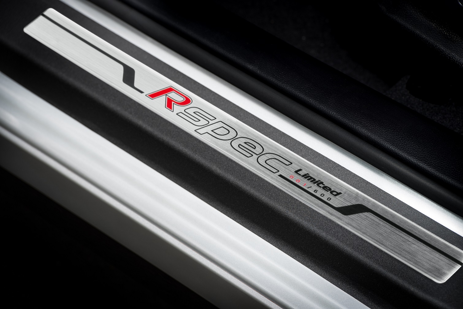Além dos bancos vermelhos, a cabine traz soleiras numeradas nas portas dianteiras, com ordem que vai de 001/600 a 600/600. O HB20 R spec será vendido nas cores branco Polar, Prata Metal (metálica), vermelho Chilli (perolizado) e na inédita cor sólida preto Onix.