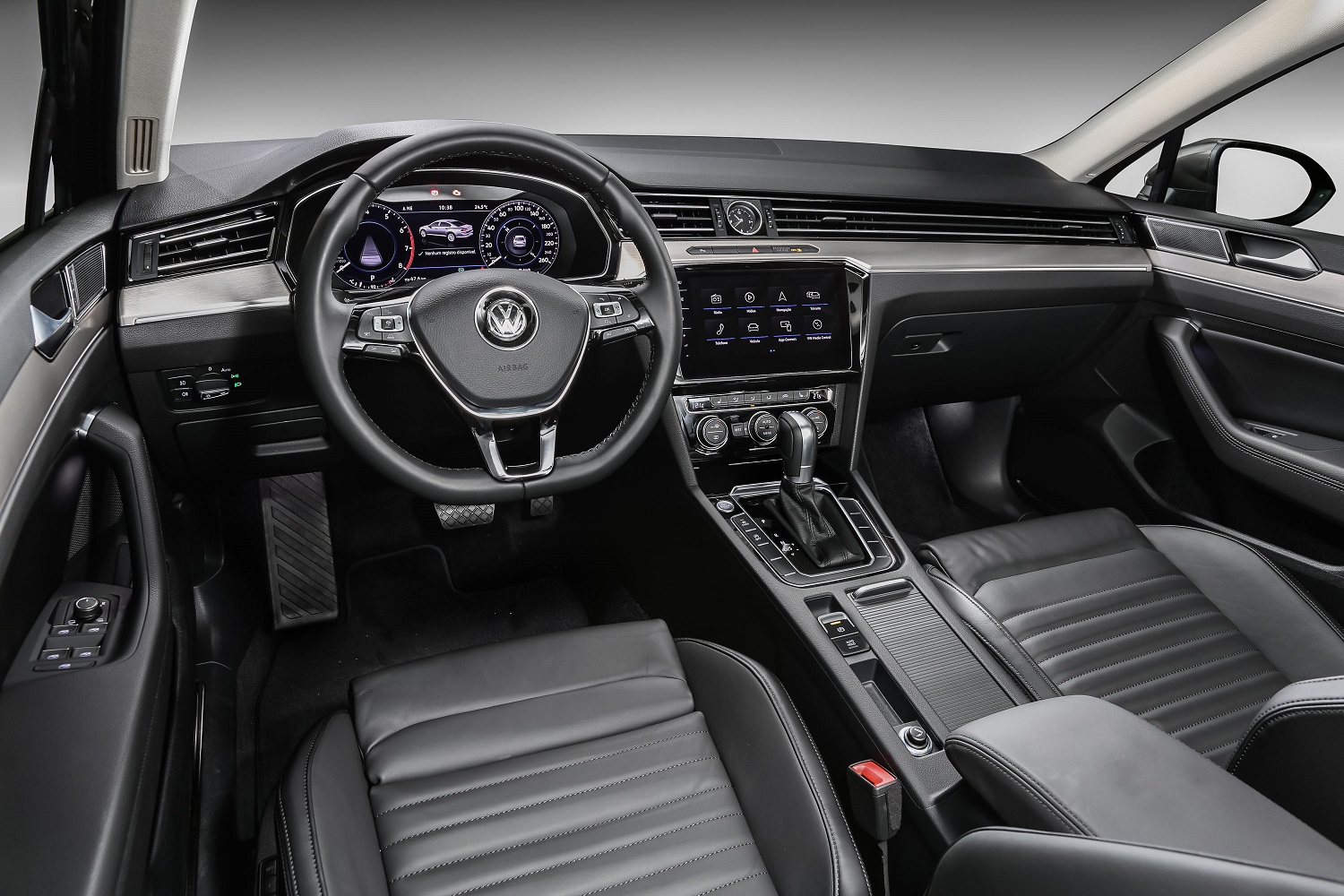 A grande novidade da linha 2018 do Passat é a nova central multimídia Discover Pro, que permite controle por gestos com movimentos para as laterais para acessar menu, trocar de música, mudar de estação de rádio, entre outras funções. Com tela de 9,2 polegadas, o sistema tem suporte a espelhamento de smartphone pelo App-Connect (e inclui Mirror Link, Apple CarPlay e Android Auto), contando ainda com HD de 60 GB, leitor de DVD, duas entradas para cartões SD e uma entrada auxiliar.