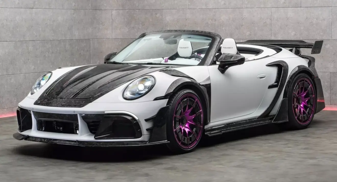 A alemã Mansory é conhecida por suas criações extravagantes — algumas delas, com um gosto (bem) questionável. Paralelamente ao visual modificado com detalhes em roxo e muita fibra de carbono forjada aparente, o Porsche 911 Turbo S Cabriolet recebeu uma injeção extra para destacar ainda mais seu já radical desempenho.