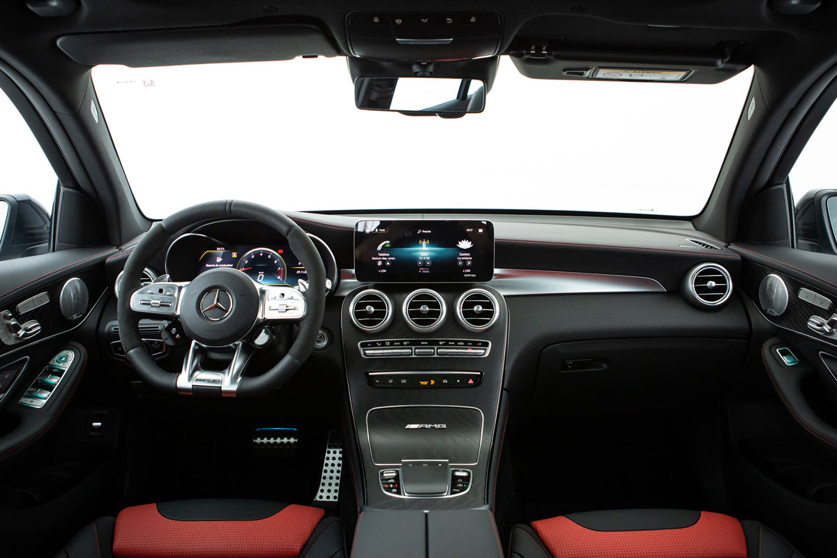 Dentre os itens de série, o Mercedes-AMG GLC 63 conta com a famosa central multimídia MBUX de 12,3 polegadas, mostradores esportivos AMG, bancos com revestimento em couro Nappa, entre outros.
