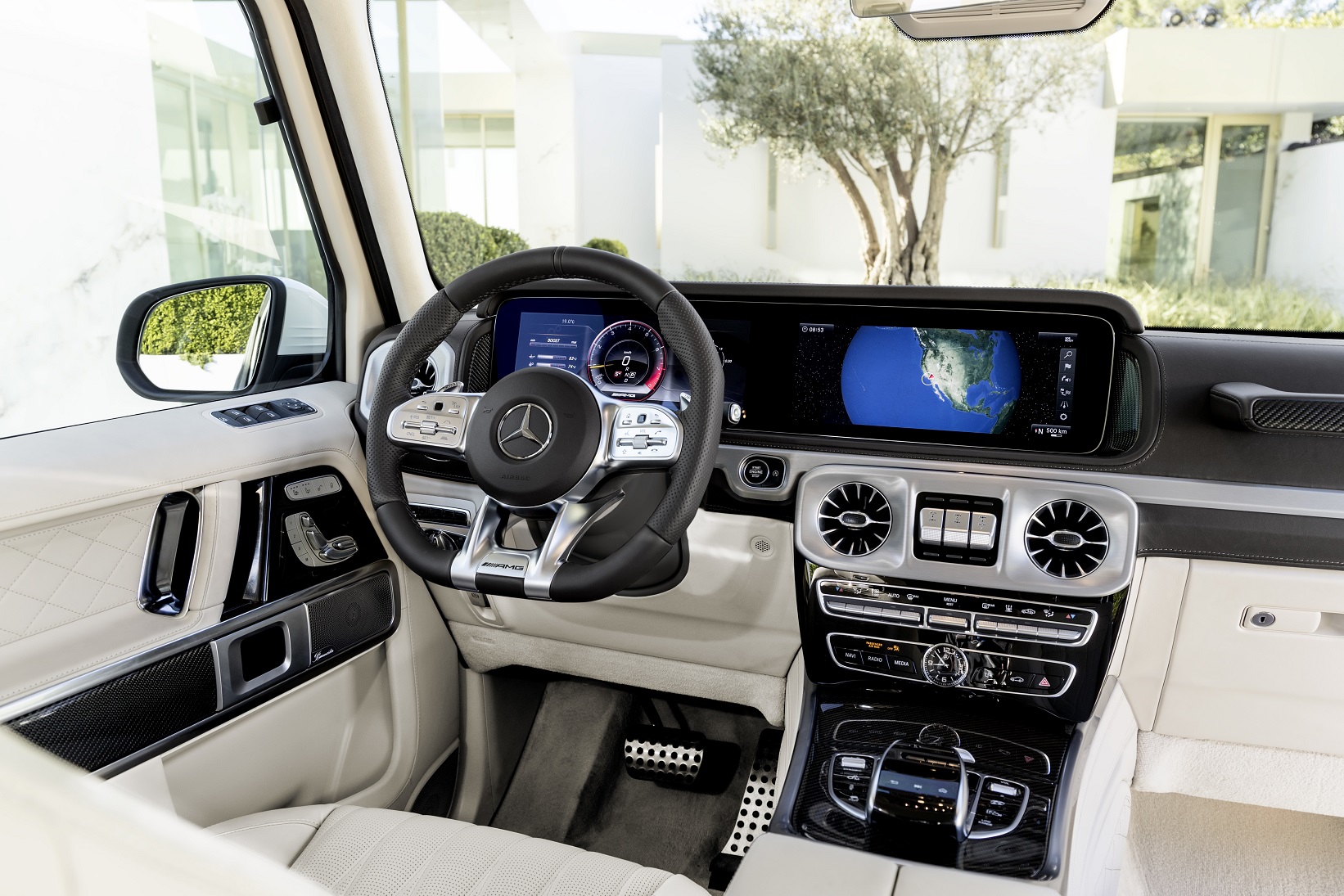 Dotado de caixa automatizada de dupla embreagem de nove marchas e tração integral que envia maior parte da força para as rodas traseiras, a marca promete que o modelo faz de 0 a 100 km/h em 4,5 segundos e atinge a máxima de 240 km/h com o pacote AMG Driver’s. Para um jipão de luxo de 2,5 toneladas, é um feito e tanto.