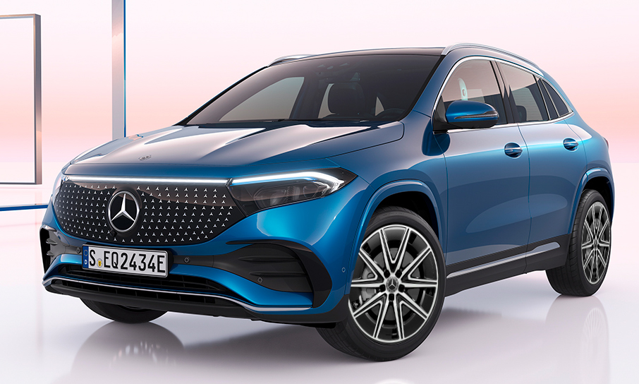 O modelo elétrico mais acessível da marca alemã é o EQA 250. Ele leva confortavelmente 5 pessoas e é um SUV compacto. Ele vem equipado com um motor instalado na dianteira, o qual rende 190 cv e 39,2 kgfm de torque. O EQA 250 vai de 0 a 100 km/h em apenas 8,6 segundos. Vem equipado com teto solar panorâmico, ar-condicionado de duas zonas, faróis de LED adaptativos e mais itens.