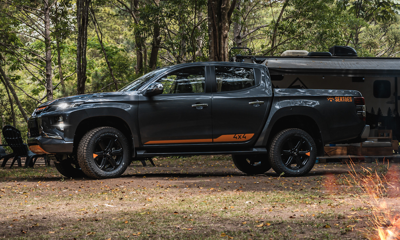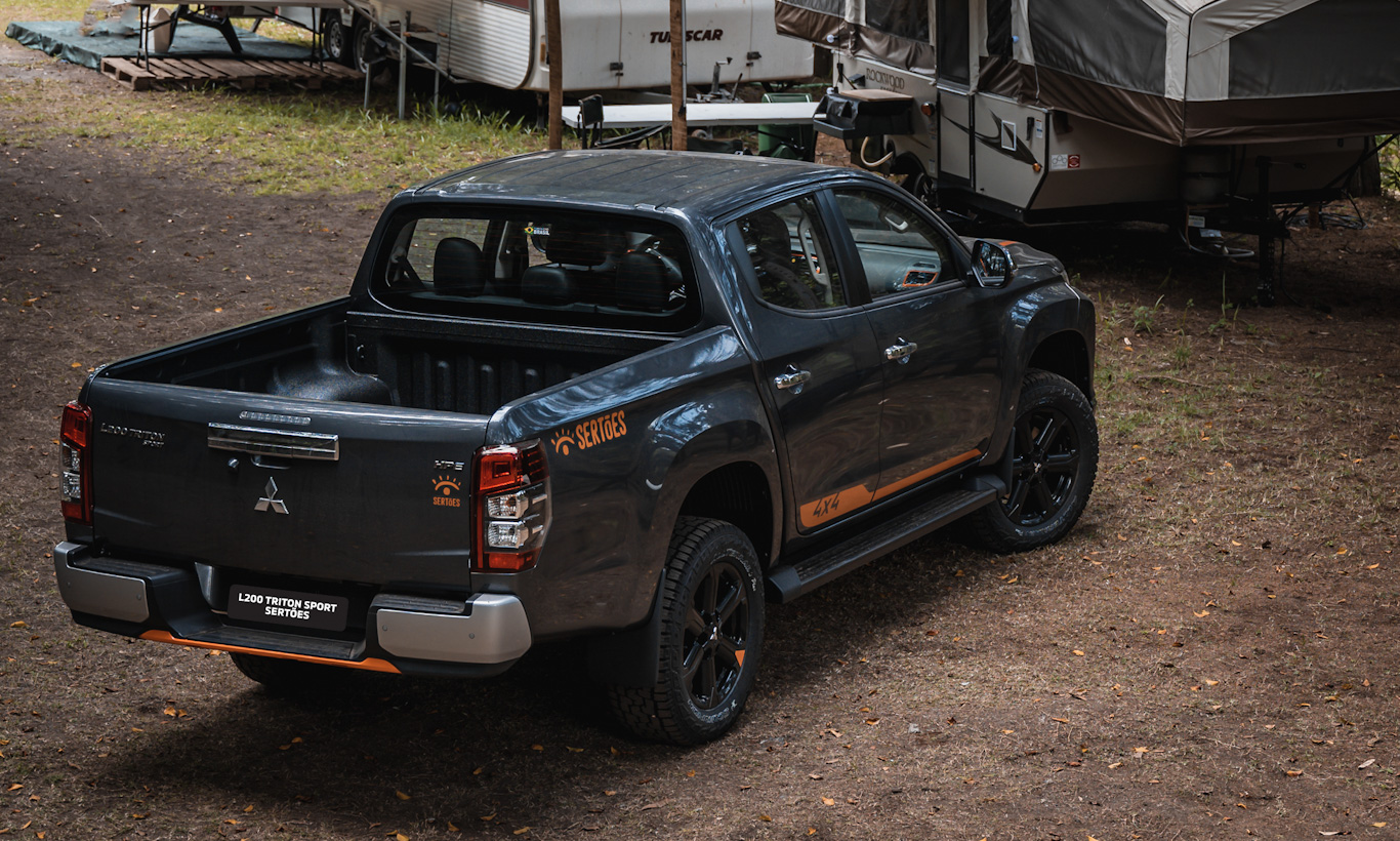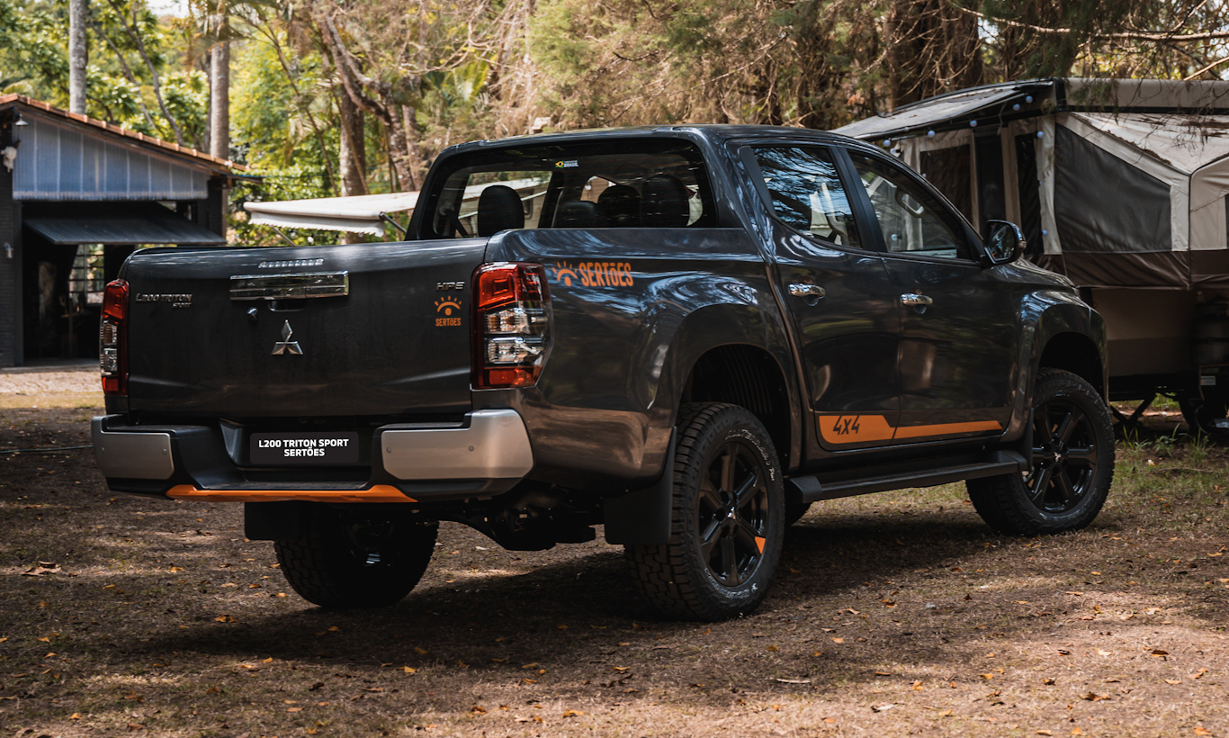 A L200 Triton Sport Sertões oferece detalhes alusivos à competição patrocinada pela marca japonesa. Por fora, a picape traz detalhes em laranja com o mesmo tom do logo adicional do Sertões em contraste com detalhes preto brilhante.