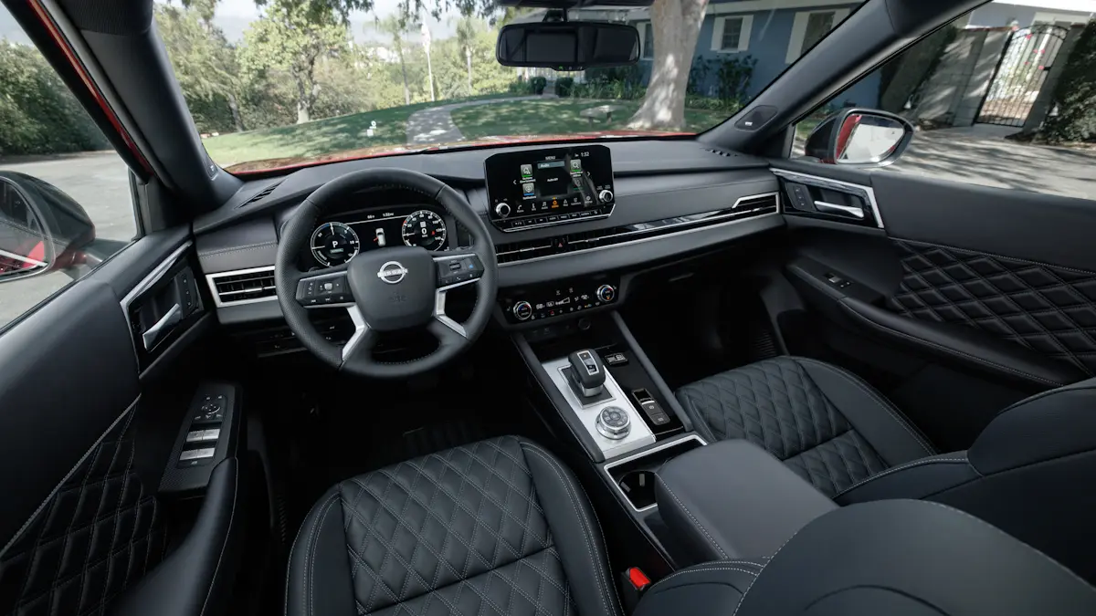 A cabine é exatamente idêntica à oferecida no Mitsubishi Outlander, salvo o logotipo da Nissan que entra no centro do volante. A vantagem é que a maioria das peças internas do SUV da Mitsubishi já são de origem Nissan, portanto, ficam mais coerentes nele. Central multimídia de 9 polegadas e painel de 12,3 polegadas, inclusive, estão lá.