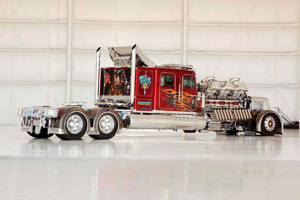 A história desse caminhão chamado carinhosamente de Thor – o deus do trovão da mitologia nórdica – começou quando um amigo de Mike vendeu para ele dois motores V12 de um iate. Com esses dois motores que originalmente rendiam 462 cv cada, Mike decidiu alguns meses depois que iria criar um mega caminhão monstro.