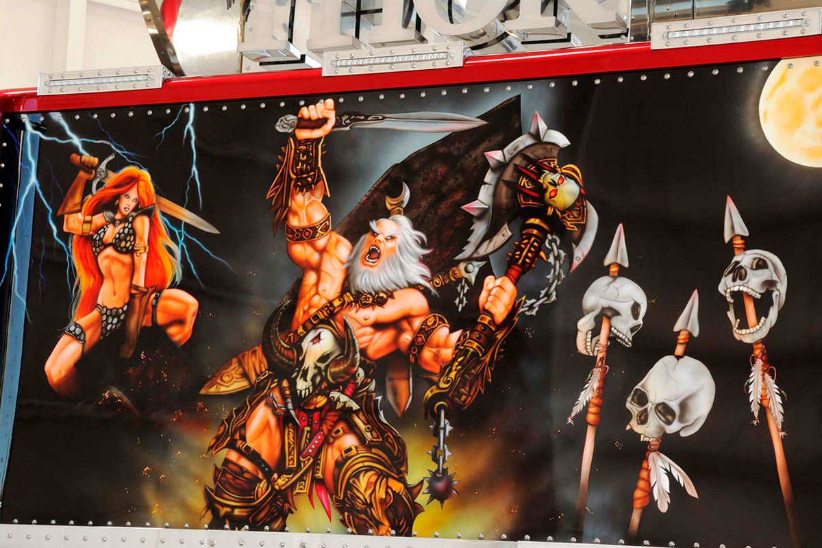 Mike não divulgou o torque do monstro, mas garantiu que o peso pesado ultrapassa os 200 km/h. O design externo do Thor é bem agressivo com o motor exposto, a pintura clássica de hot rod, além da pintura do deus do trovão na traseira do caminhão.