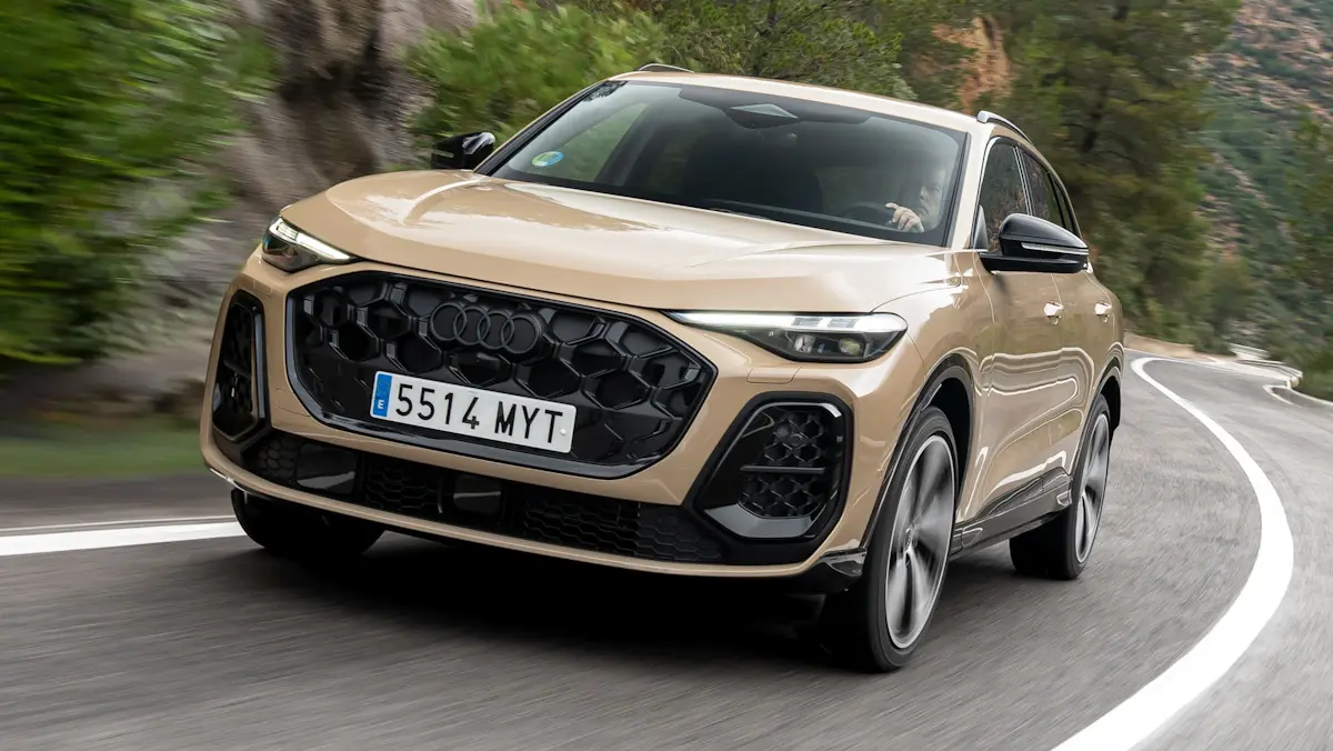 A terceira geração do Audi Q5 foi desenvolvida usando a plataforma PPC, a mesma do A5, tanto que é possível ver muita intimidade visual entre os dois modelos. A grade ovalada do sedan está presente no SUV, assim como os faróis finos com pixels no lugar dos LEDs diurnos.