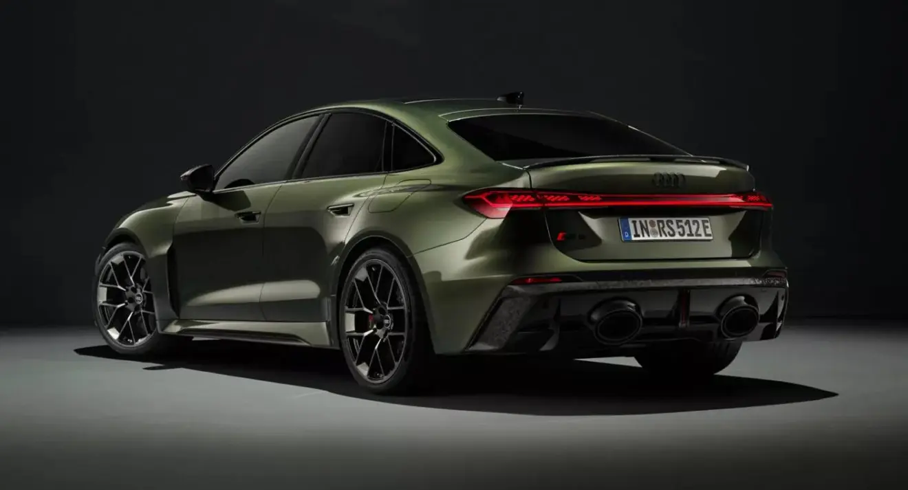 Visualmente, o RS5 abandonou a sutileza. A carroceria ficou 90 mm mais larga que a do A5 comum, garantindo uma postura que transborda agressividade. A face escura, com grade frontal Single Frame e assinaturas de bandeira quadriculada, entrega um visual de poucos amigos. Na traseira, o difusor com aletas de GT3 abraça duas saídas de escape ovais de grandes proporções.