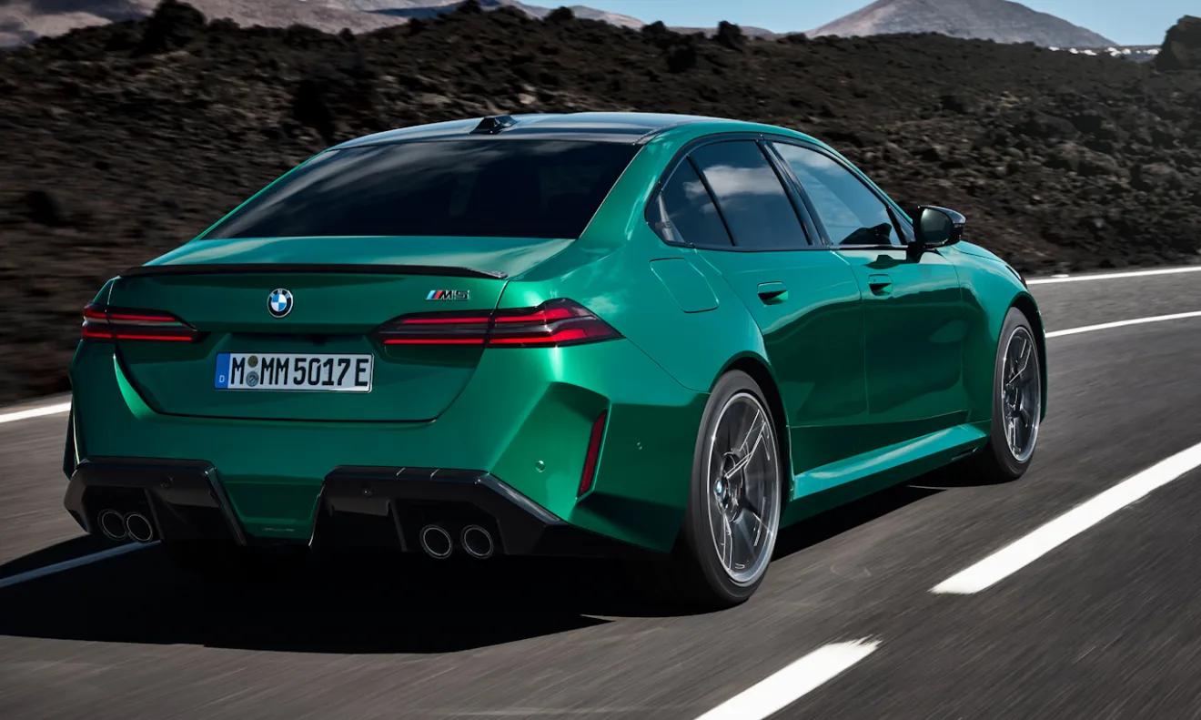 Mas ele não é apenas ágil; seu exterior foi reformulado, elevando a beleza do três volumes. A carroceria é marcada pelos arcos de rodas proeminentes, pelas saias laterais, pelo para-choque dianteiro com grandes entradas de ar e pelo logotipo M5 na coluna Hofmeister kink.