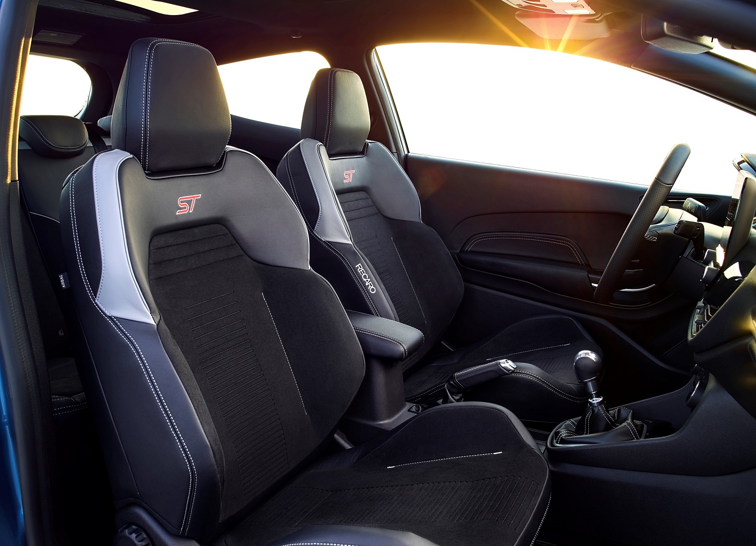 O Fiesta ST pode ter rodas de 17 ou 18 polegadas, trazendo ainda bancos esportivos Recaro, volante com base achatada e central multimídia Sync 3 com tela de 6,3 ou 8 polegadas. Ele pode incluir ainda itens de assistência, como controle de velocidade adaptativo, assistente de manutenção em faixa e leitura de placas de trânsito.