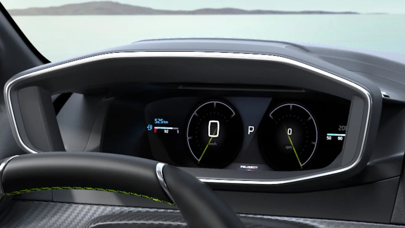 Ao abrir a porta, os acabamentos variam conforme a versão escolhida, enquanto o quadro de instrumentos é totalmente digital i-Cockpit 3 está presente na GT, e o multimídia de 10″ voltado para o motorista é o mesmo do recém-lançado Peugeot 2008.