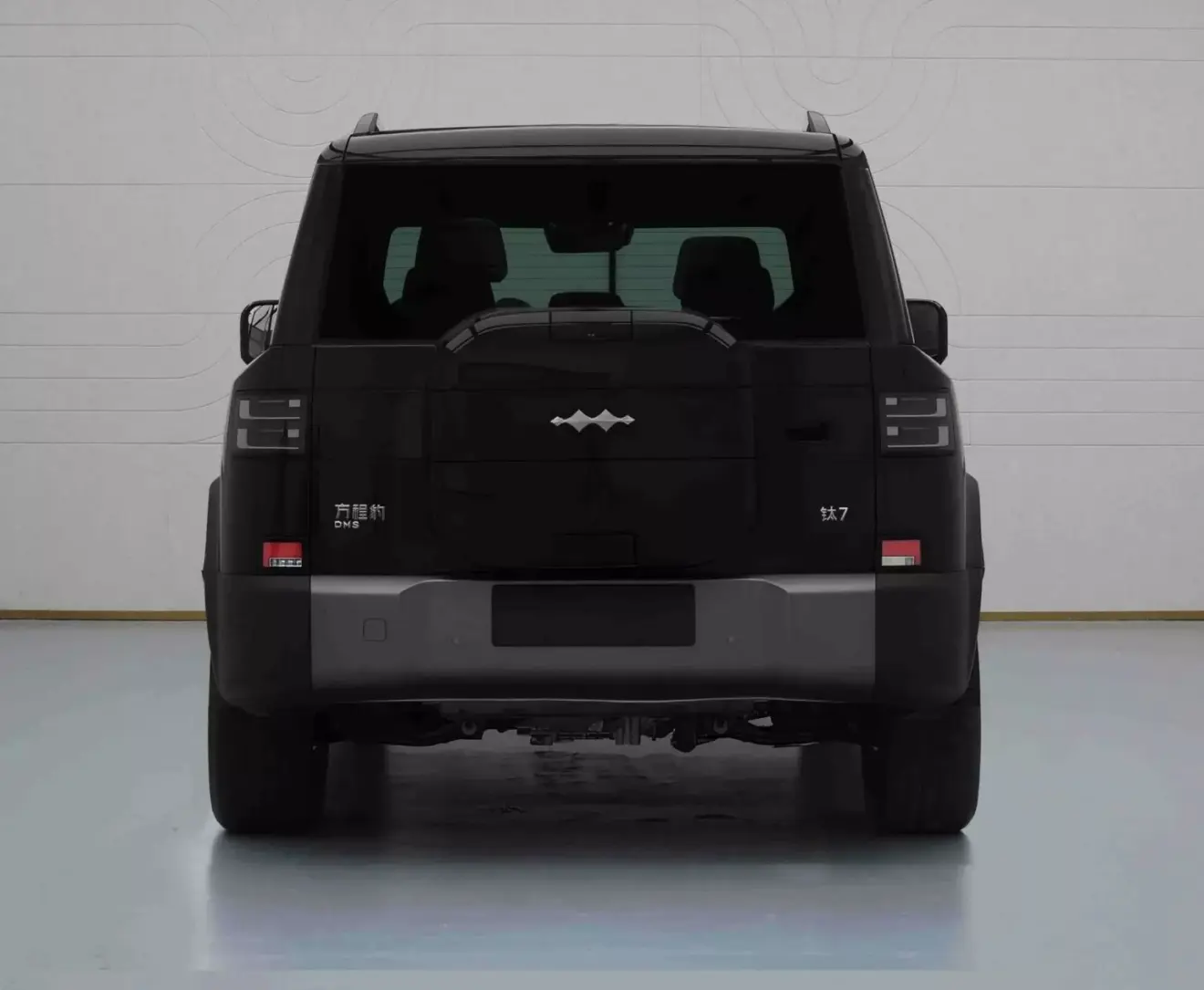 Já em tamanho, o novo SUV da Fang Cheng Bao terá 4,99 m de comprimento, 1,99 m de largura, 1,86 m de altura e entre-eixos de 2,92 m. Para se ter uma ideia, o Tai 7 tem 10,2 cm a menos do que o Land Rover Defender 130. Na traseira, o SUV chinês contará com porta-estepe instalado na tampa do porta-malas. Para-choque saliente e lanternas quadradas se destacam.