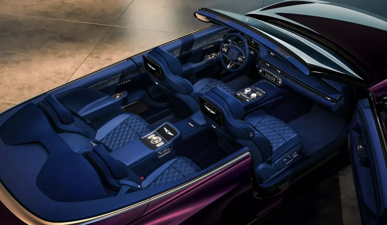 Já o X Gran Covertible chama atenção não apenas pela sua carroceria na cor roxa, mas por seu interior azul inspirado nas cores das uvas usadas na produção de vinho Cabernet Sauvignon. Isso que podemos chamar de conceito. Tanto o cupê quanto o conversível são equipados com o volante do G90 atual, porém, com um terceiro raio.