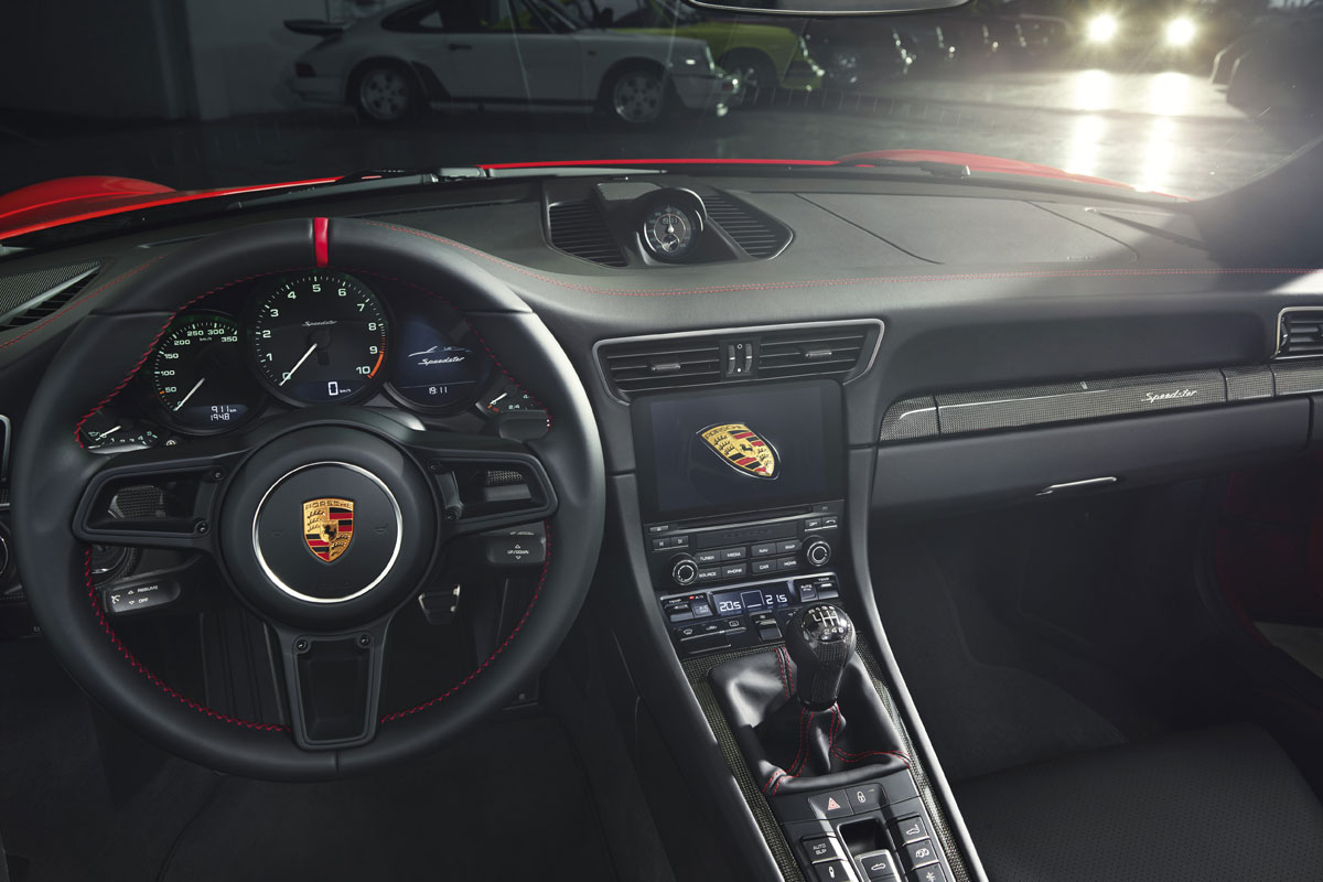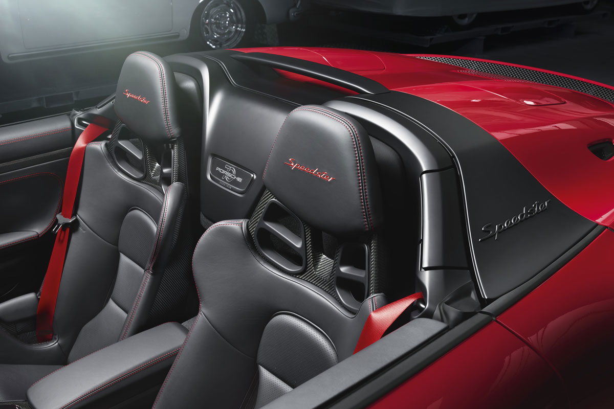 Visualmente o 911 Speedster tem o para brisa mais baixo do que as versões cupê e cabriolet, além do teto retrátil menor que fica coberto pela elevada cobertura do motor, com duas bolhas que demarcam os assentos dianteiros.