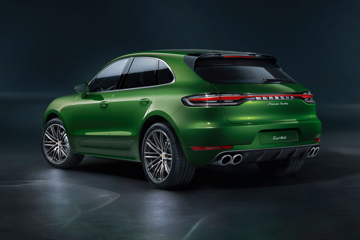 No quesito design, o Macan Turbo se diferencia das demais versões pelo novo para-choque dianteiro que conta com um splitter mais pronunciado, enquanto o para-choque traseiro traz difusor exclusivo e ponteiras duplas de escape, fora que há ainda um novo spoiler no topo do vigia traseiro.