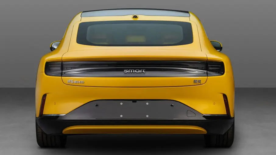 Dos lados, o modelo opta por linhas mais arredondadas, maçanetas embutidas e janelas amplas. A traseira do sedan da Smart tem queda suave, lanternas escurecidas e interligadas. Inclusive, o para-choque tem ampla parte pintada de preto, dando ar mais imponente ao modelo. O #6 será fabricado a partir da plataforma PMA2+ da Geely, sendo o maior modelo a usar esta arquitetura.