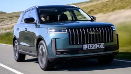 Visualmente falando, o Jaecoo 5 parece um Land Rover Range Rover Evoque sem o teto baixo. A frente é bem alta, com os faróis retangulares de LED posicionados bem no alto da carroceria. Tal qual seu irmão 7, o 5 tem grade frontal retangular com frisos verticais cromados, dando uma aparência mais agressiva.