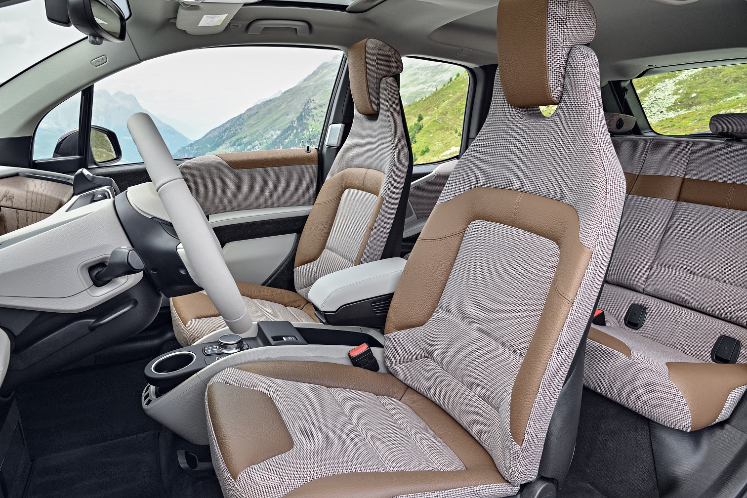 O i3 usa transmissão automática continuamente variável para enviar sua força para as rodas traseiras. As baterias de íons de lítio de 33 kWh garantem autonomia de 180 quilômetros de autonomia no modo elétrico (antes rodava de 130 a 160 km), que ganha mais 150 km por conta do extensor de autonomia REX, formado por um motor a gasolina de 650 cm³ (ativado somente para recarregar as baterias).