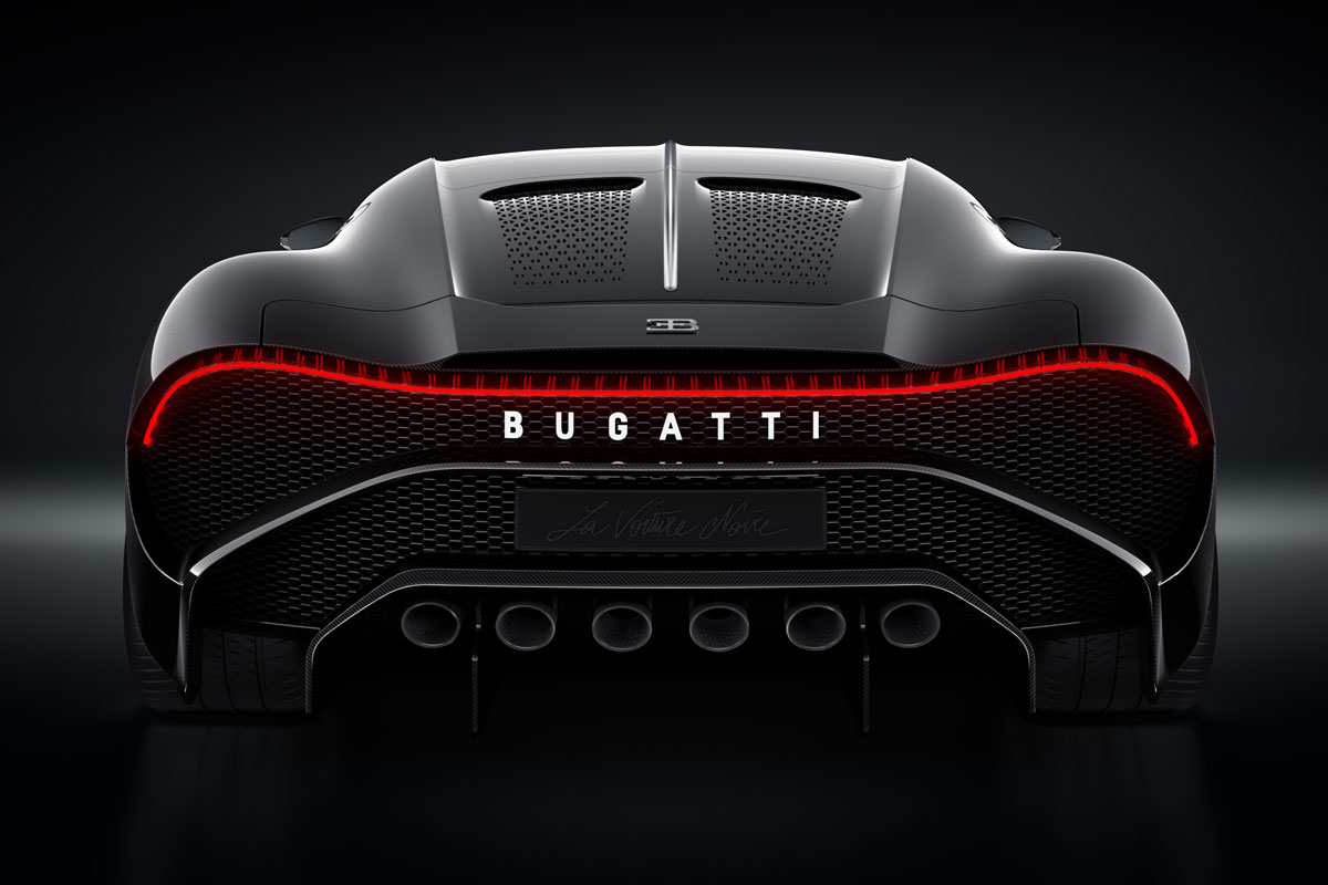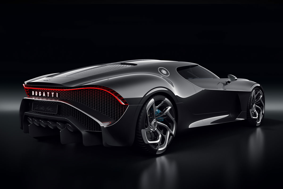 O design do Bugatti La Voiture Noire é uma obra de arte a parte com seus faróis de LED de desenho elegante que ficam por cima da caixa de roda e tem, bem como a entrada de ar que está mais proeminente e ostenta o logo da Bugatti. Nas laterais, o que chama mais atenção sem dúvida são as enormes rodas, que deixam o visual mais encorpado e agressivo.