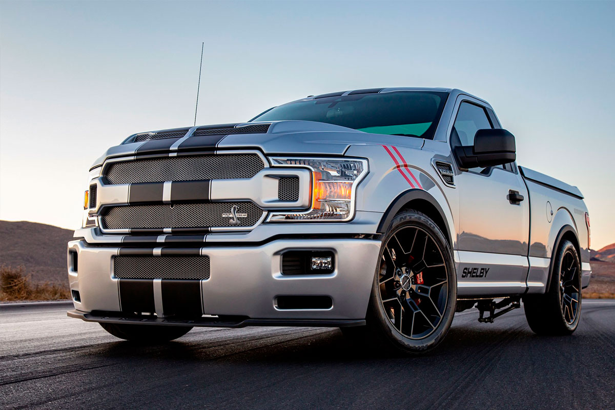 A versão de cabine simples da F-150 foi a escolhida para ganhar a benção da Shelby, que recebeu uma nova pintura com as famosas listras que também são utilizadas no Mustang, suspensão rebaixada, novas rodas de liga leve e outras modificações.