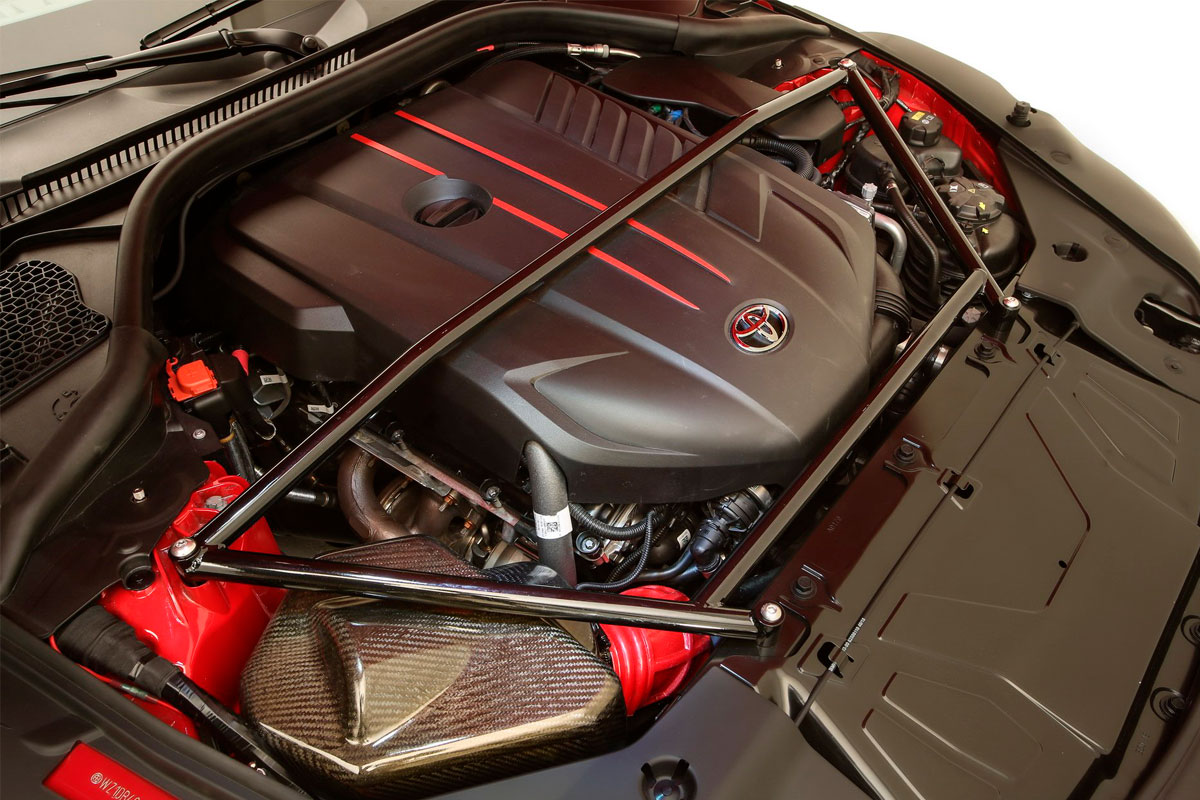 O esportivo ainda conta com freios Brembo, novas rodas de liga leve de 19 polegadas da HRE, com pneus 295/30 e 305/30. O GR Supra Heritage Edition ainda conta com uma pintura exclusiva chamada de vermelho Re-Entry Red. Infelizmente, o modelo foi produzido somente para o evento, sem pretensão de chegar nas lojas da marca.