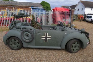 É fato que a segunda geração do Volkswagen Fusca, chamada de New Beetle, não é a das mais queridas pelos entusiastas do besouro, já que suas linhas não eram tão proporcionais quanto ao do modelo original. Mas um New Beetle à venda na Inglaterra traz uma “roupagem” militar que o deixou mais parrudo – ao menos visualmente.