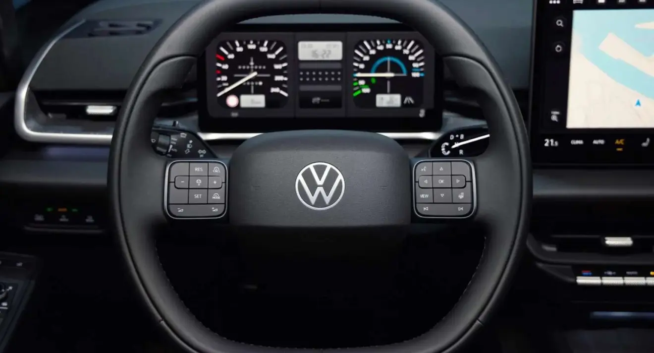No interior, a Volkswagen substituiu os comandos sensíveis ao toque por botões tradicionais no console e no novo volante de dois raios. O cockpit digital recebeu uma atualização com quadro de instrumentos de 10,25 polegadas e infoentretenimento de 12,9 polegadas, equipada com a última geração de software da marca.