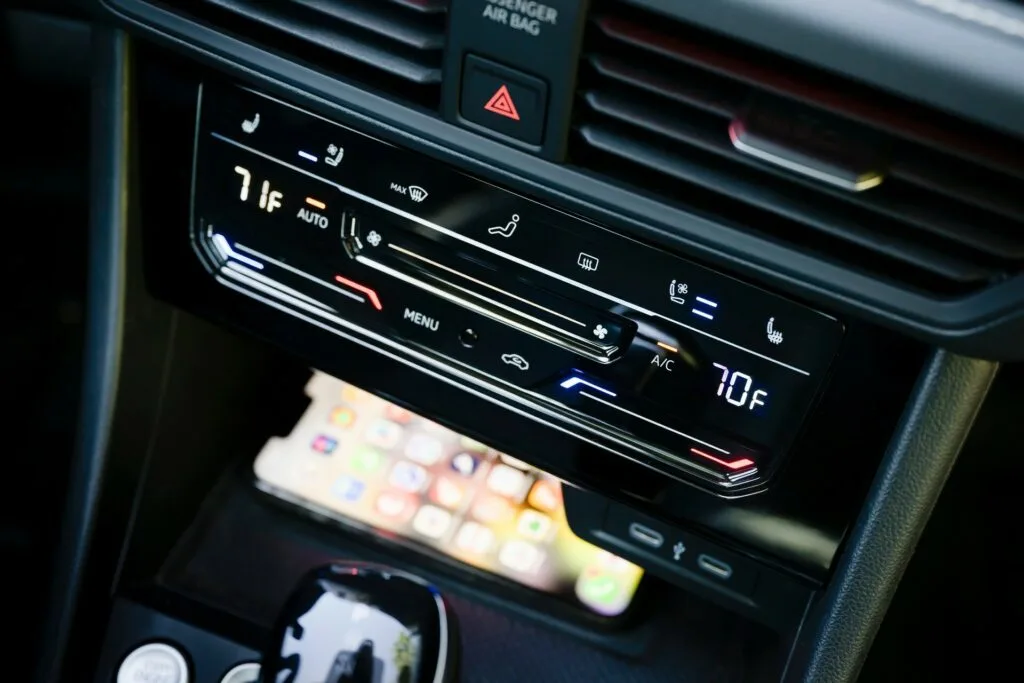 Ao abrir a porta, o interior não sofreu mudanças dramáticas, mas incluiu um novo painel e um sistema multimídia de 8 polegadas, substituindo o anterior de 6,5 polegadas. Outras atualizações incluem o ar-condicionado Climatronic Touch, com comandos táteis, similar ao do VW Taos Highline 250TSI à venda em nosso mercado.