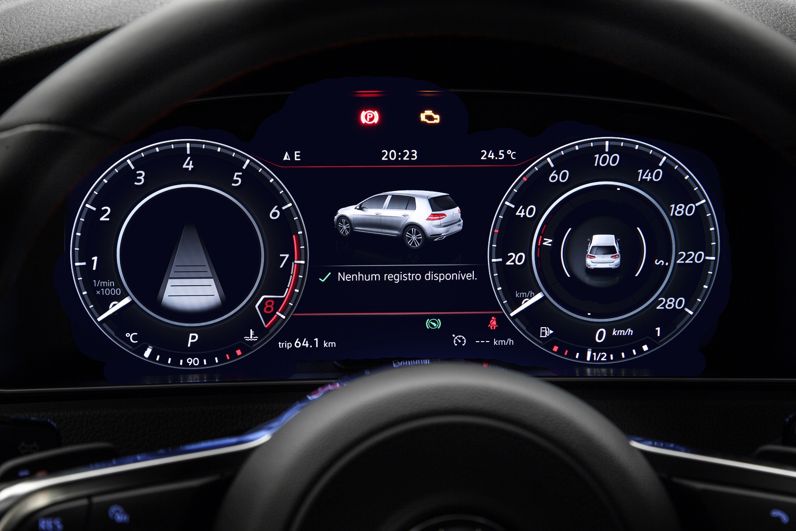 Já no Golf GTI há a central multimídia Discover Media com GPS integrado, além do novo painel de instrumentos configurável Active Info Display, que traz tela de 12,3 polegadas com resolução de 1.440 x 540 pixels e cinco modos de visualização. Os bancos são revestidos com o clássico tecido xadrez.