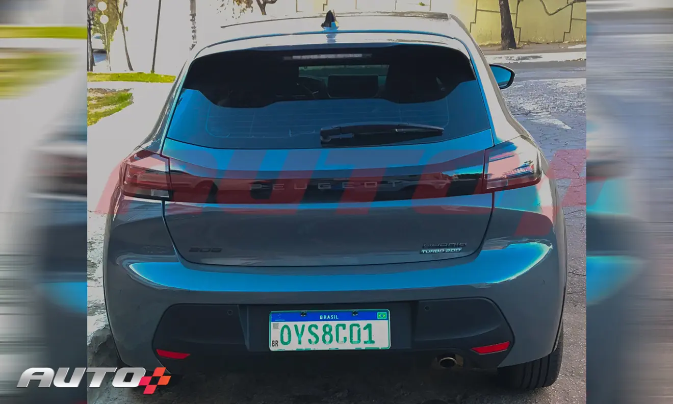 O logotipo Hybrid aparece na traseira do Peugeot 208, logo acima do emblema Turbo 200 que indica seu motor 1.0 turbo. Apesar de não ser um híbrido de verdade, a Stellantis insiste nessa nomenclatura, adotando uma estratégia que CAOA Chery e Kia também empregam no Brasil.