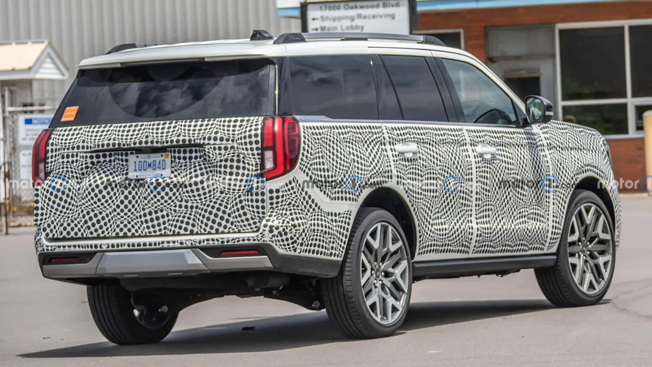 A camuflagem leve fez com que o flagra feito pelo Motor1 expusesse todas as linhas do novo SUV. Ele ficará mais quadrado do que antes, trazendo elementos visuais de outros SUVs da marca. Na frente, o novo Expedition integra os faróis em C com a grade frontal. A luz diurna fica nas bordas dos faróis, de maneira elegante.