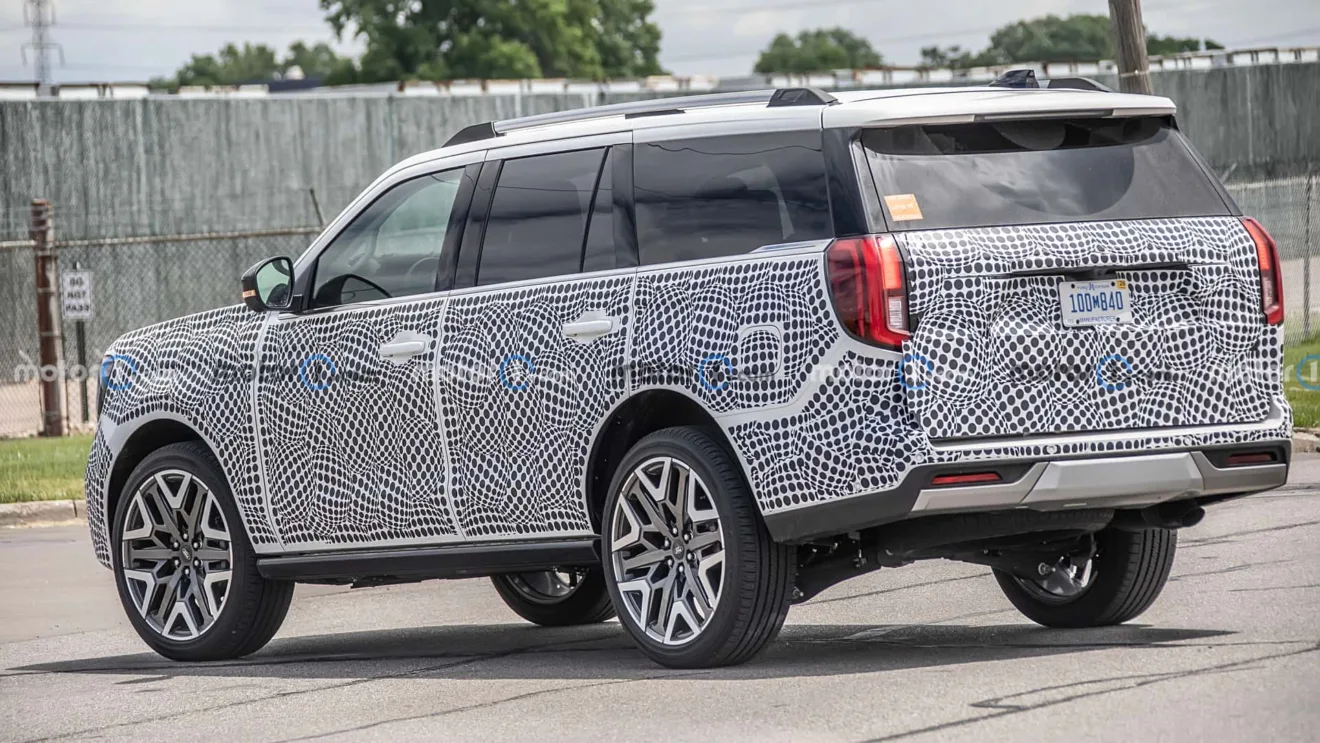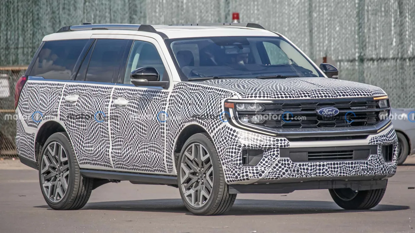 A camuflagem leve fez com que o flagra feito pelo Motor1 expusesse todas as linhas do novo SUV. Ele ficará mais quadrado do que antes, trazendo elementos visuais de outros SUVs da marca. Na frente, o novo Expedition integra os faróis em C com a grade frontal. A luz diurna fica nas bordas dos faróis, de maneira elegante.