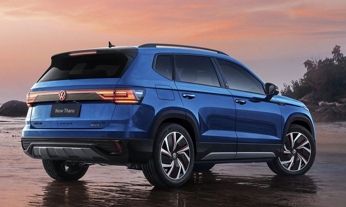 Essencialmente, a linguagem visual da VW chinesa é bem diferente da global. Por lá, os modelos contam com faróis divididos em dois andares e uma extensão na lateral que só foi aplicada em Tiguan e Golf. No Tharu 2024, a Volkswagen deu a ele uma frente muito parecida com a do T-Cross brasileiro, assim como uma lanterna bem semelhante.