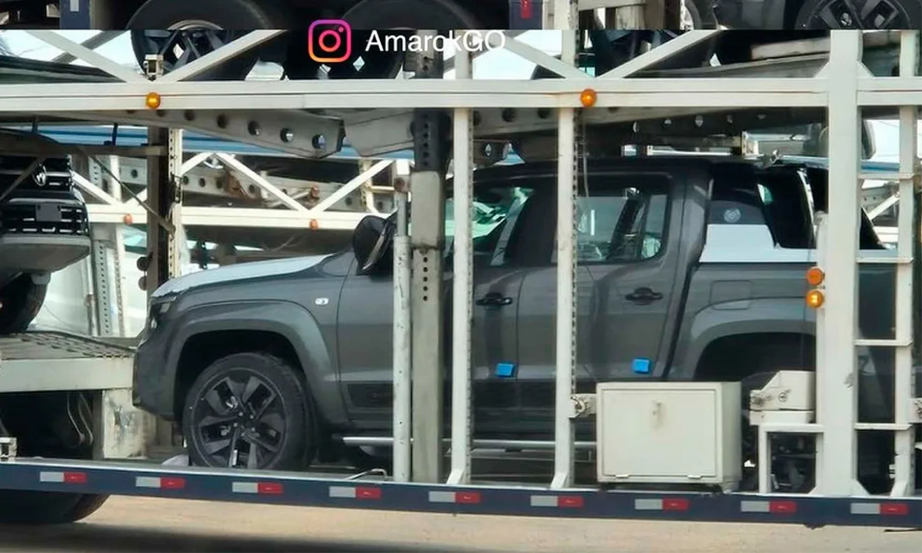 O flagra da caminhonete na cegonheira foi feita pelo perfil AmarokGO no Instagram. Nas imagens, é possível ver a caminhonete na versão Extreme, topo de linha da caminhonete, com a pintura em um tom de cinza, que lembra o Cinza Oliver utilizado em algumas versões da Saveiro.