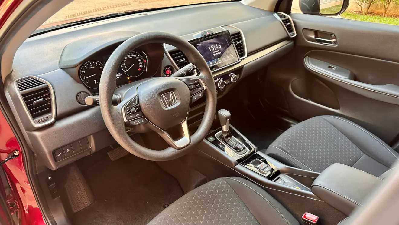O City 2026 traz de série freios ABS, airbags frontais, laterais e de cortina, controle de tração e estabilidade, freios a disco nas quatro rodas, frenagem automática de emergência, direção assistida, ar-condicionado e central multimídia.